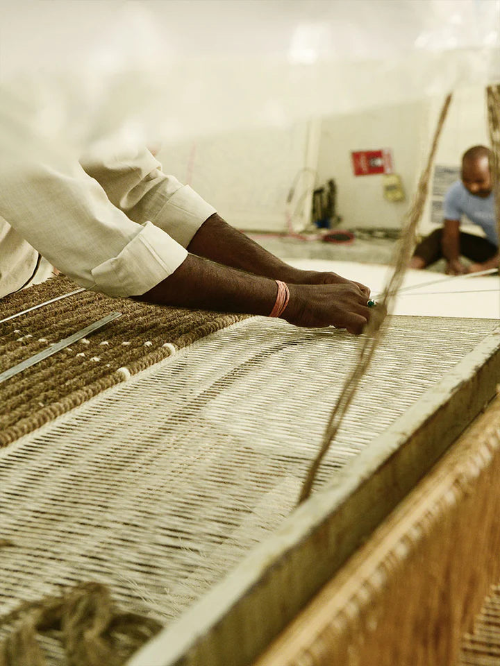 Individual knots are hand tied on a vertical loom one row at a time by expertly trained artisans. Depending on the density of the knots, rugs of this construction can last for generations. Intricate and textural hand-carving with high-low pile effects can be a feature of these handmade luxury rugs. The average hand-knotted rug takes 240 days to make. Typically, this construction features durable wool or wool blends with luxurious silk or viscose.